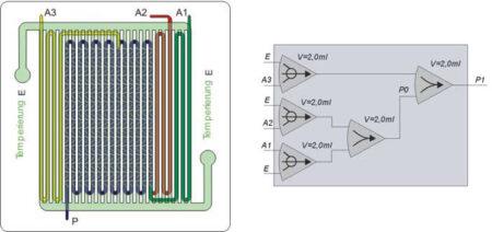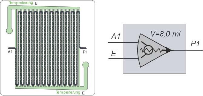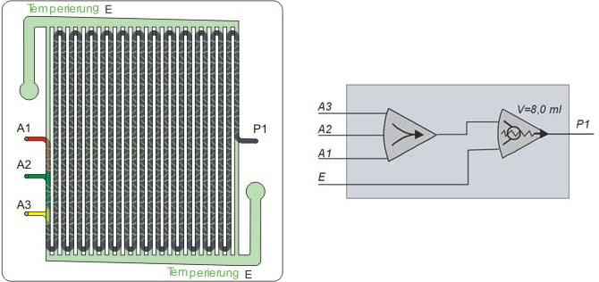 Implement lab results into bigger scales with pilot series stainless steel chips fitted with thermostats.Microreactor WF-Lab SS-1: 3.0 ml volume, 0.8 mm channel size.